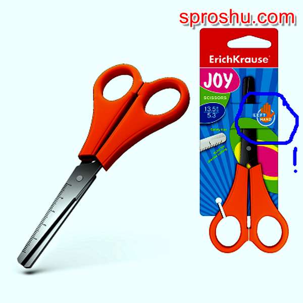 Возьмите ножницы себе в правую руку так, как Вам удобно ими пользоваться, а затем гляньте на себя в зеркало. Вот так будет удобно и Вашей дочке-левше их держать.