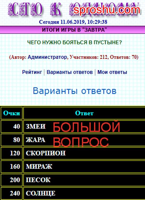 100 к 1. Чего нужно бояться в пустыне (интерактивная игра)?