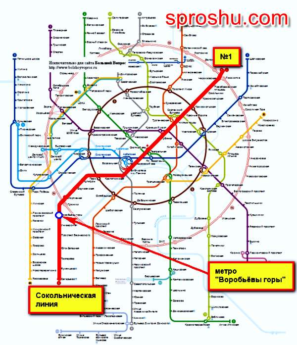 Станция "Воробьёвы горы" находится красного цвета на Сокольнической линии метро. Сокольническая линия - это первая линия московского метро, №1 - её официальный цифровой номер.