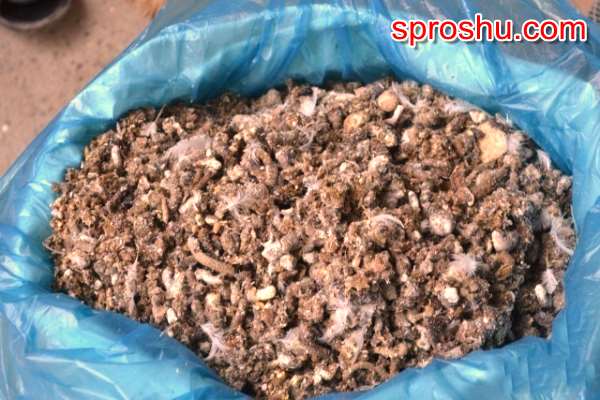 У нас нет кур, но мы набираем голубиного, с чердака многоэтажек. Но бизнес "подсуетился" и в продаже продают высушенный куриный помет в мешках.