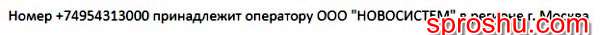 Телефонный номер 74954313000. Регион регистрации Москва (Московская область).Оператор - ООО "НОВОСИСТЕМ".