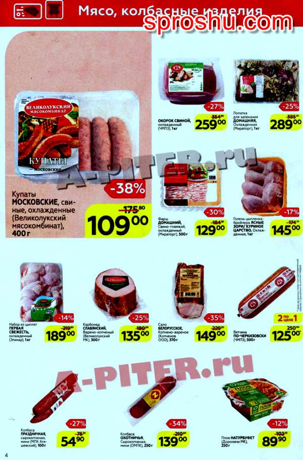Охлаждённые свиные купаты "Московские" - 38 процентов. Окорок свиной охлаждённый - 27 процентов.