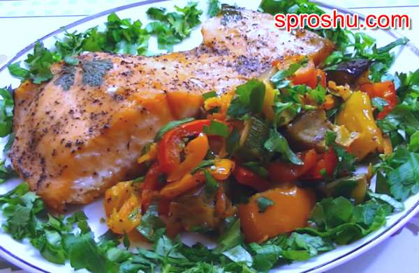 - Ингредиенты для «Горбуша с овощами и белым вином»: