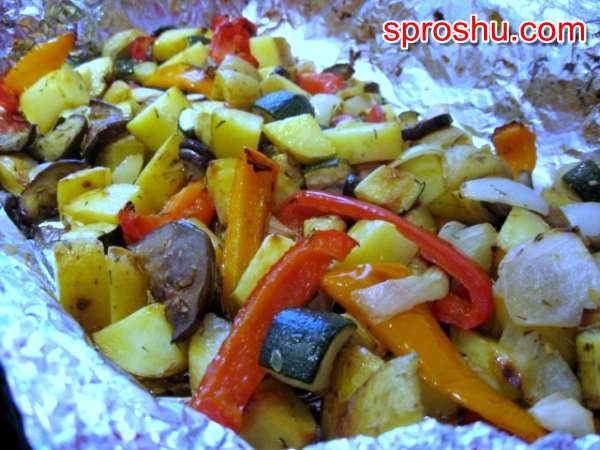 При запекании овощи лучше нарезать одинаковыми кусочками, а не как попало. Для того чтобы они все равномерно пропеклись. И не перемешивать их, а стараться переворачивать каждый кусочек. Так каждый кусочек хорошо зарумяниться.