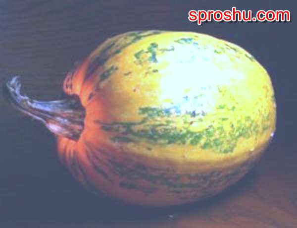 Вес каждого плода – примерно 4-6 килограмм. Мякоть тыквы немного сладковатая, светлого цвета и средней толщины. Внутри плода есть много-много больших семян темно-изумрудного цвета, не покрытых оболочкой. Есть информация, что тыква Ольга выделяется семенами с увеличенным содержанием тыквенного масла. Ольга относится к среднеплетистым и среднеспелым сортам. Плоды круглые, а в стадии технической спелости – плоды темного изумрудного цвета с бледными пятнами, в период биологической зрелости кора будет окрашена в очень темный оранжево-изумрудный цвет.
