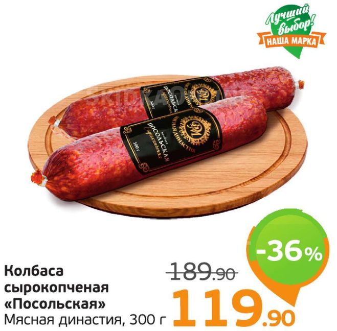 Шпик "По-домашнему" - скидка 30 процентов. Сырокопчёная колбаса "Посольская" - скидка 36 процентов.