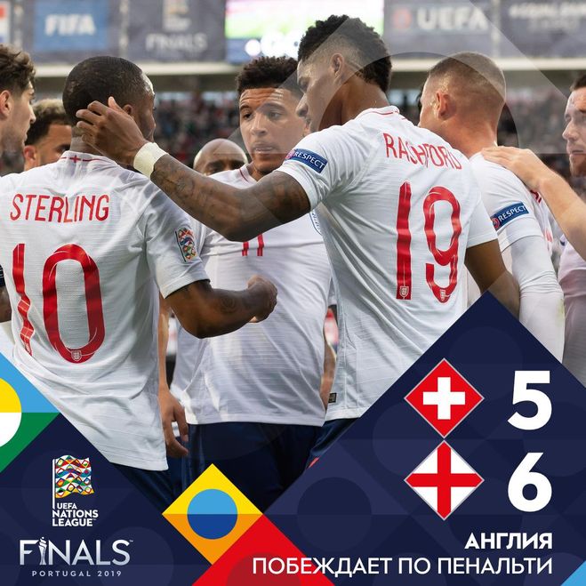 В воскресенье 9 июня завершается первый в истории турнир под названием "Лиги наций УЕФА". В Португалии будут сыграны финал и матч за третье место. Первым состоялся матч за бронзовые медали, в котором встретились неудачники полуфиналов - сборная Швейцарии и сборная Англии. Матч прошёл на стадионе "Афонсу Энрикеш" в Гимарайнше и к сожалению выдался не самым интересным. Командам так и не удалось отличиться не в основное, не дополнительное время и судьба бронзовых медалей решилась в серии пенальти. Удачливее в футбольной лотереи оказались англичане, они выиграли в серии 6:5 и стали бронзовым призёром Лиги наций 2018/2019.