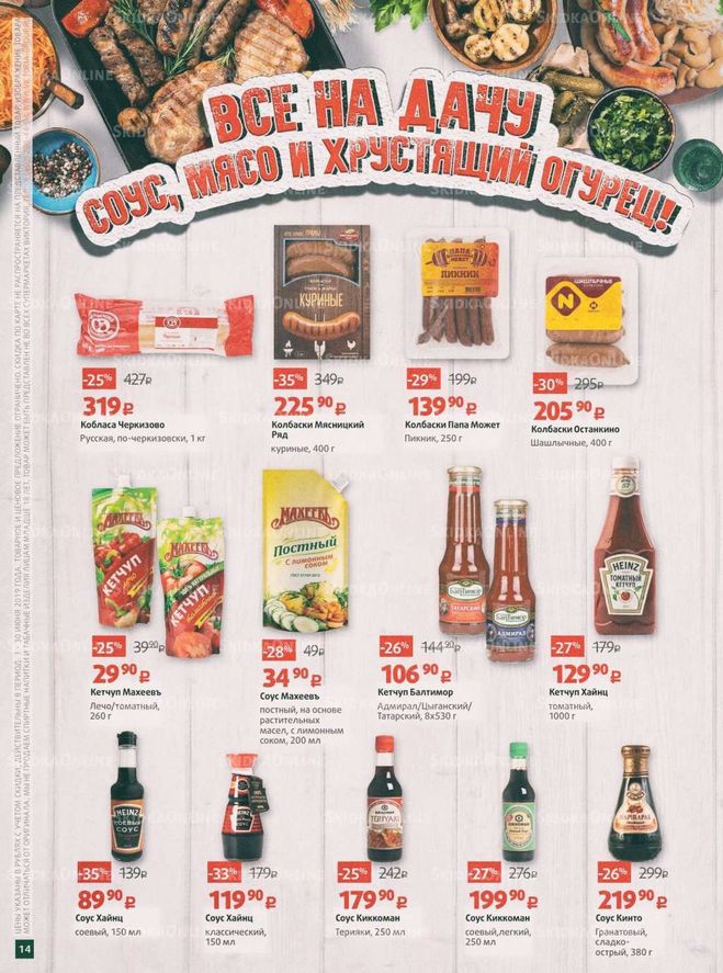 Колбаски "Шашлычные" - 30 процентов. Томатный кетчуп "Махеев" - 25 процентов. Кетчуп "Балтимор" - 26 проц.