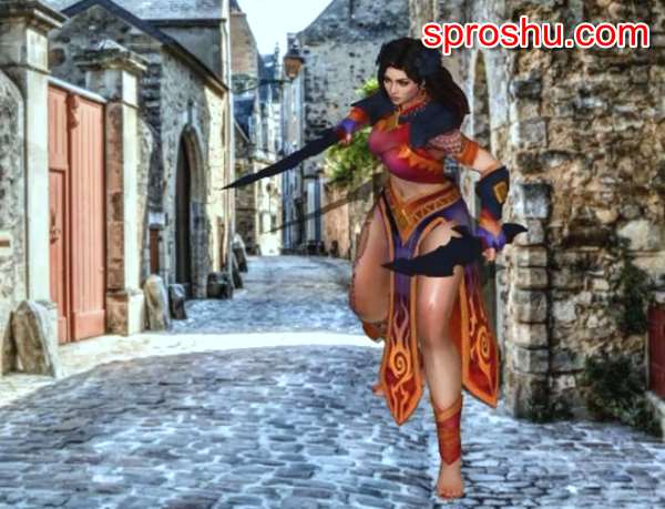 Пример. Воительница Элвин на фоне города демонстрирует искуство боя двумя мечами. Ролик вставлять без надобности.