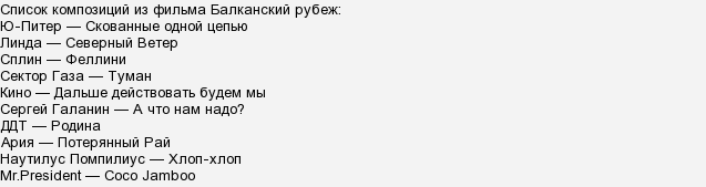 Поэтому указанные ниже песни саундтреками к фильму "Балканский рубеж" не являются, но, возможно, именно одна из этих песен привлекла ваше внимание при просмотре фильма и именно это название вы ищете.