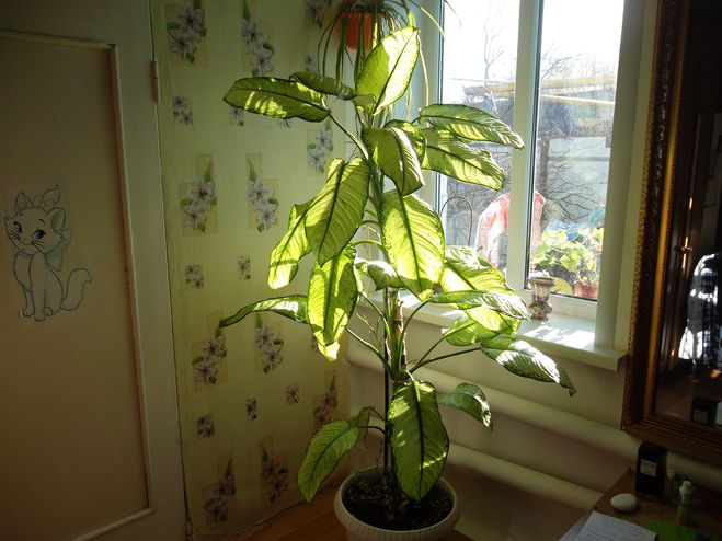 Сейчас все комнатные растения вынесла на улицу: летом стараюсь их "выгуливать", предоставлять более комфортные условия (свежий воздух, тепло, солнце). Остались только эухарис и фаленопсисы : им прямые солнечные лучи противопоказаны. И, ещё, диффенбахия и пестролистный каучуконосный фикус в больших вазонах стоят на полу. Очень любят расти на улице фуксия, герани, ахименес, фикусы, пальма нитиеносная ,бальзамин. Так что подоконники опустели: все гуляют на улице.