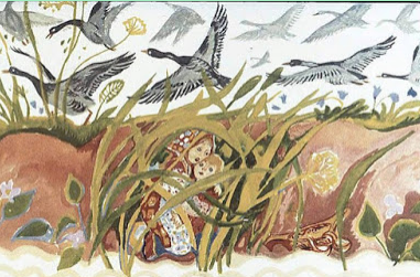 Отправились как-то родители в город и наказали Милашечке стеречь и следить за братом Ивашечкой. Отвлеклась девочка и унесли её братца гуси к Бабе-Яге. Побежала девочка искать братца и на её пути встретились яблоня, речка да печка, которые предложили ей за помощь отведать яблок, испить киселя и печка отведать хлеба ржаного. Девочка отказалась и указал ей дорогу ёж. Нашла Милашечка братца в избушке Бабы-Яги и схватив его побежала прочь, а гуси кинулись в погоню. Не стала тогда Милашечка привередничать и отведала хлеба ржаного, яблок с яблони и испила киселя и помогли ей укрыться ей от гусей печка, речка и яблонька. Девочка стала после этого послушной и больше не привередничала.