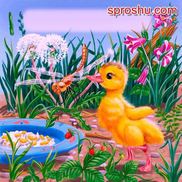 Он не испугался огромной злой стрекозы, которая шумела своими крыльями, а смело схватил ее клювом. При этом стрекоза сама испугалась от неожиданности, с трудом она вырвалась из крепкого клюва Алеши и улетела. И, представляете, больше она не появлялась над тарелкой и не пугала утят.