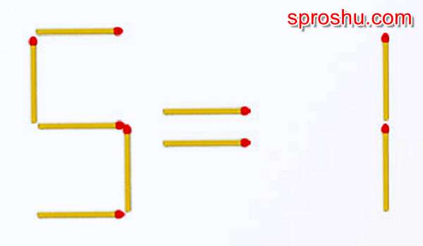 у нас есть выражение 5=1, понятно, что за 2 хода не получится сделать в левой и правой частях одинаковые цифры, поэтому мы поступим следующим образом. Необходимо из = сделать знак >, тогда 5>1,вот и все!