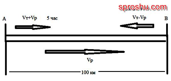 Задача: как найти скорость теплохода, если путь от A до B равен 100 км...?