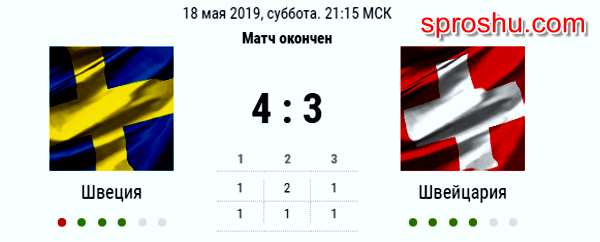 Итоговый счет матча Швеция 4 - 3 Швейцария.