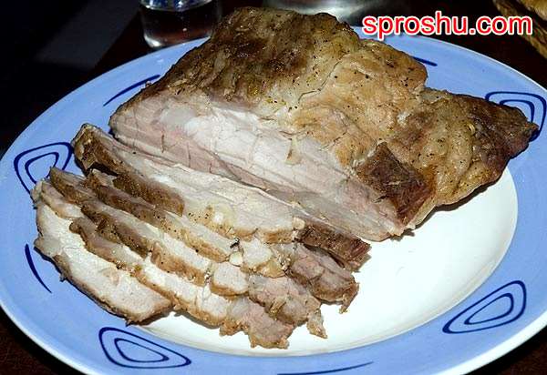 Для приготовления будут нужны два килограмма молоденькой свиньи, две горсточки сеной трухи, 500 миллилитров креплёного пивка, 6-9 горошинок чёрного перца, три листика лаврушки, по одному корешку петрушки и сельдерея,
