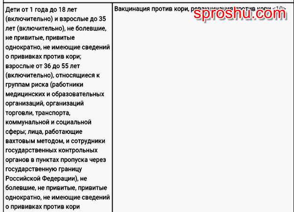 Взрослым прививки от кори делают в случаях: