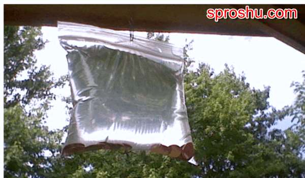 Проткните для этого верхний конец пакета (можно для этих целей использовать канцелярскую скрепку) подвесьте в выбранном месте, или с помощью какого-либо шнурка (на фото картинка справа)