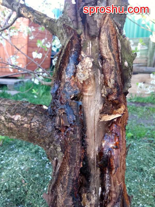 Как сохранить вишню на даче? Ствол дерева разрушается. См. Фото.