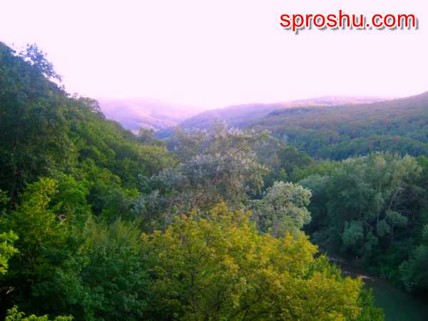 Как пример, на фото ниже окрестности города Горячий Ключ (Краснодарский край). Бескрайние просторы гор, рядом течёт голубая река, совсем близко огромная скала и полноценнное ущелье с тёмным ручьём. Чем не сказка?