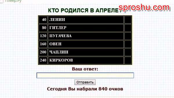 100 к 1. Кто родился в апреле ?(интерактивная игра)?