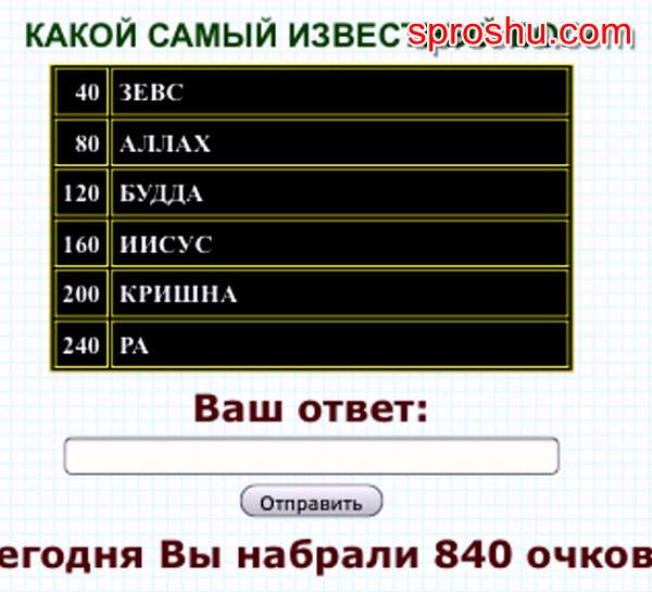 100 к 1. Какой самый известный бог? (интерактивная игра)?