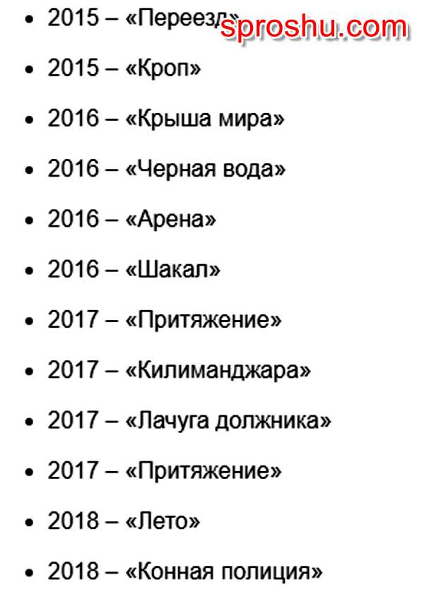 Фильмография Ирины Старшенбаум состоит вот из таких кинофильмов: