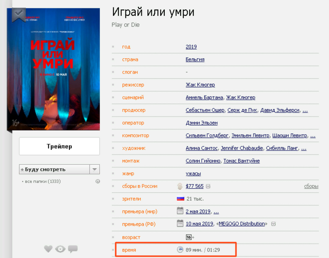 Играй или умри фильм 2019 года, сколько идёт по времени?