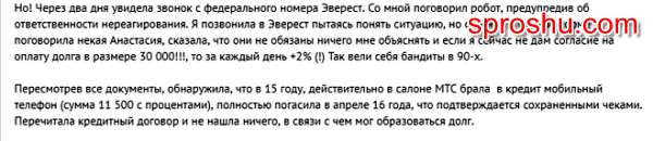 С номера 88006004937 звонят с коллекторского агентства ООО "Эверест". Звонят, либо по поводу задолженности самим должникам, либо, третьим лицам, в поисках должников. Звонки такого рода относятся к не очень приятным, а потому и рейтинг, у данного номера телефона, негативный. Вот один из отзывов с сайта "banki.ru": Чтобы избежать подобных "сюрпризов" необходимо при закрытии кредита всегда требовать справку об отсутствии долга. Жаль, что я об этом тоже узнала только столкнувшись с подобной ситуацией. Не могу рекомендовать занести этот номер в ЧС, т.к. каждый сам должен решить, как выходить из сложившегося положения. Лично я, после того как "обожглась" с ПКБ ни копейки, третьим лицам, платить не собираюсь. И если есть у кого-то право истребования долга, то только через суд, и не судебным приказом, а в исковом производстве. Так и дешевле, и надёжнее.