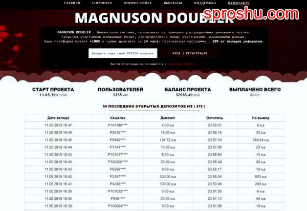Сайт magnusondoubler.icu, это просто обман в сети не стоит верить в то что это действительно инвестиционный проект, ресурс является финансовой пирамидой. Проект обманывает людей magnusondoubler.icu ничего никому не выплачивает.