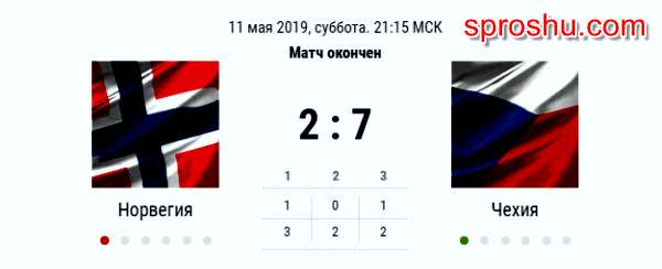 Итоговый счет матча Норвегия 2 : 7 Чехия.