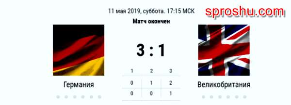 В итоге победу одержала команда Германии со счетом 3 : 1.