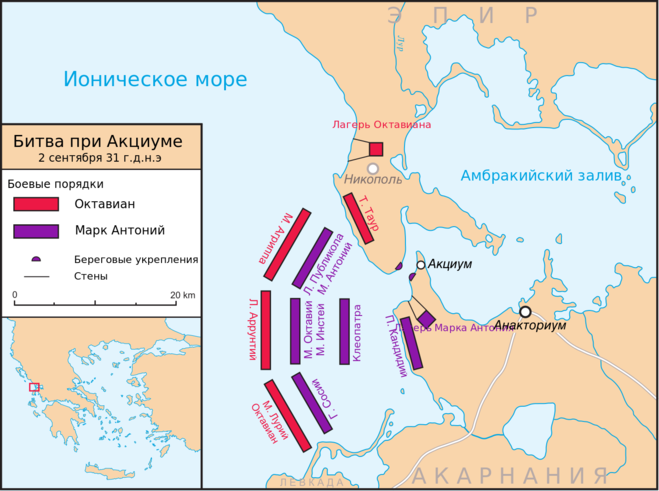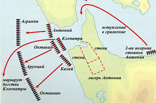Можно посмотреть на карту на эту сражения битв, где потерпел поражения Флот Антония.