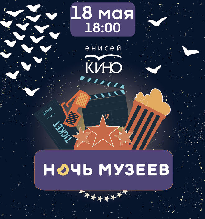 Музейную ночь можно провести в "Енисей кино" - программа подготовлена интереснейшая, а начнется она в 18.00, 18 мая 2019-го года.
