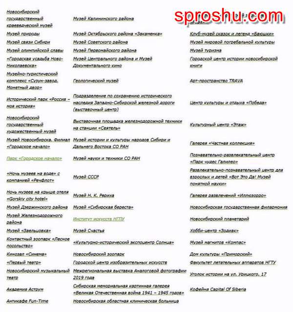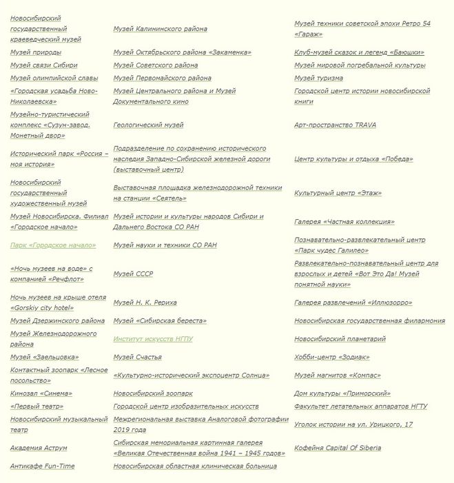 Информация об участниках акции "Ночь музеев" Новосибирск 2019