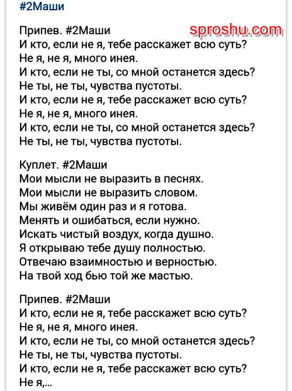 Текст на данную композицию можно прочитать вот на этом сайте или на фото под этим текстом, а прослушать и скачать на этом музыкальном портале.