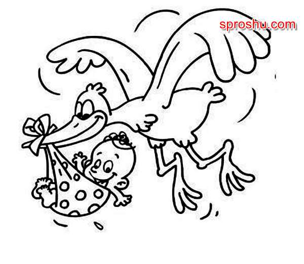Как нарисовать аиста с новорожденным младенцем?