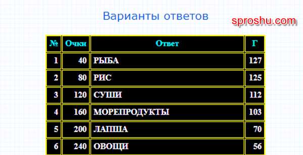 - Суши. Ответ набирает 120 очков.
