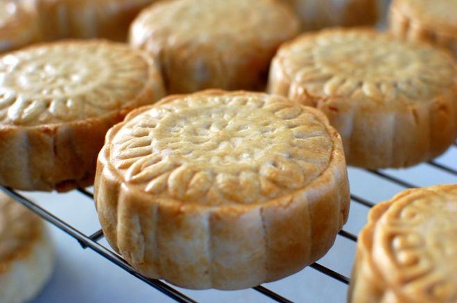 Готовые китайские лунные пирожные вытащим из духовки и подадим на стол. Приятного аппетита!