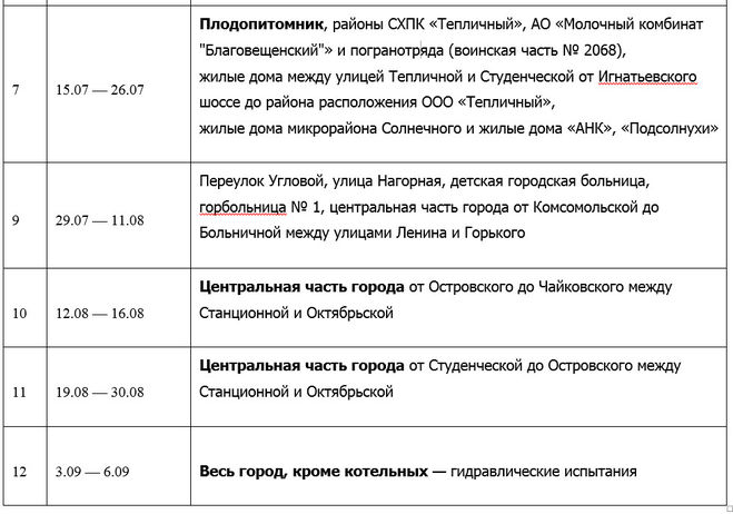 Какой график отключения горячей воды в Благовещенске в 2019 году?