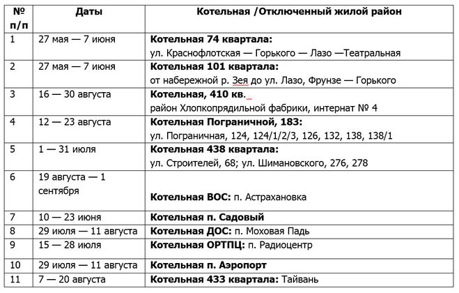 Вот собственно сам план останова котельных в Благовещенске в 2019 году.