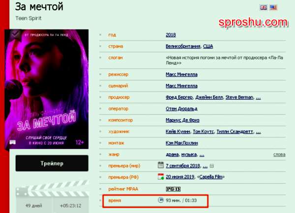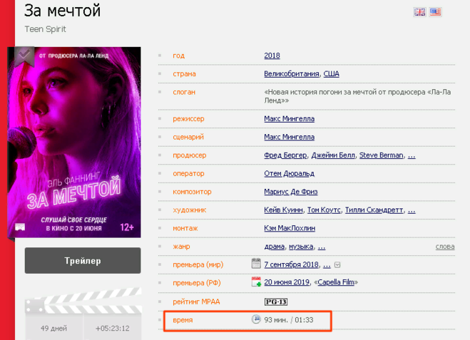 Фильм За мечтой (2018). Сколько идёт по времени?