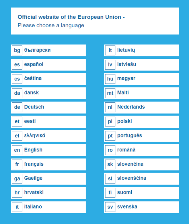 Всего же в ЕС 24 рабочих языка, данные с официального сайта.
