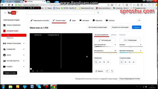 Почему исчезла возможность редактирования (улучшения) видео на ютуб (см.)?