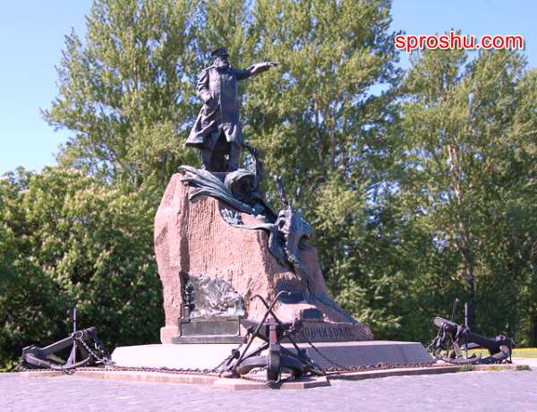 После трагической гибели сразу возникла идея увековечить память Макарова . Был объявлен сбор добровольных пожертвований на открытие памятника. На постамент была пожертвована глыба гранита, которую везли из Финляндии и она затонула. Глыбу подняли со дна залива.