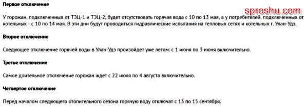 Какой график отключения горячей воды в Улан-Удэ в 2019 году?