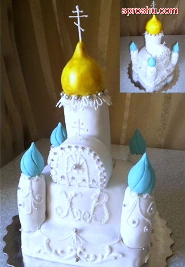Для приготовления пасхального кулича в виде церкви понадобятся 50 грамм дрожжей, 5 сырых куриных яичек, полтора стакана сахарного песка, 1 столовая ложка рафинированного подсолнечного масла, 220 грамм сливочного масла или маргарина, 500 миллилитров молока, изюм, цукаты, цедра, миндаль.