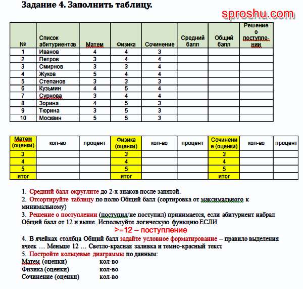 Эксель. Как заполнить таблицу (результаты экзаменов)?
