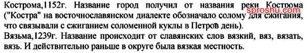 Окружающий мир, 4 кл. Как объяснить названия городов Кострома, Вязьма?